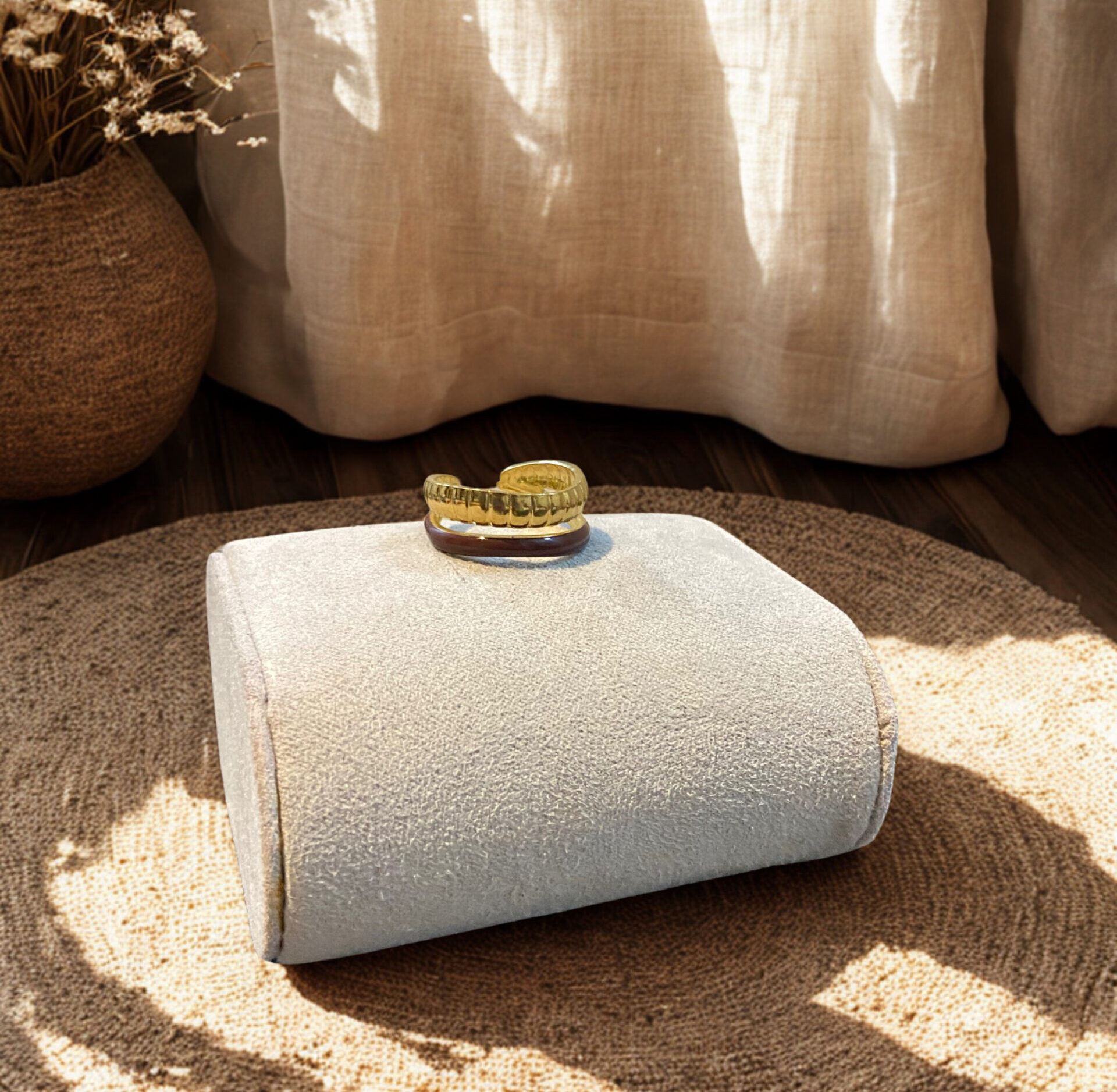 Bague ouverte aux lignes martelées. Authentique et intemporelle.
