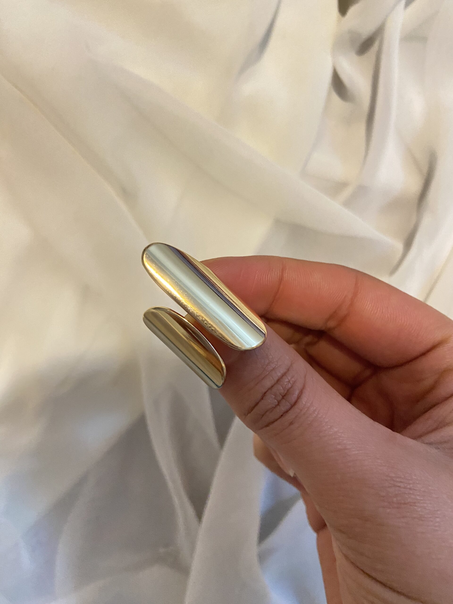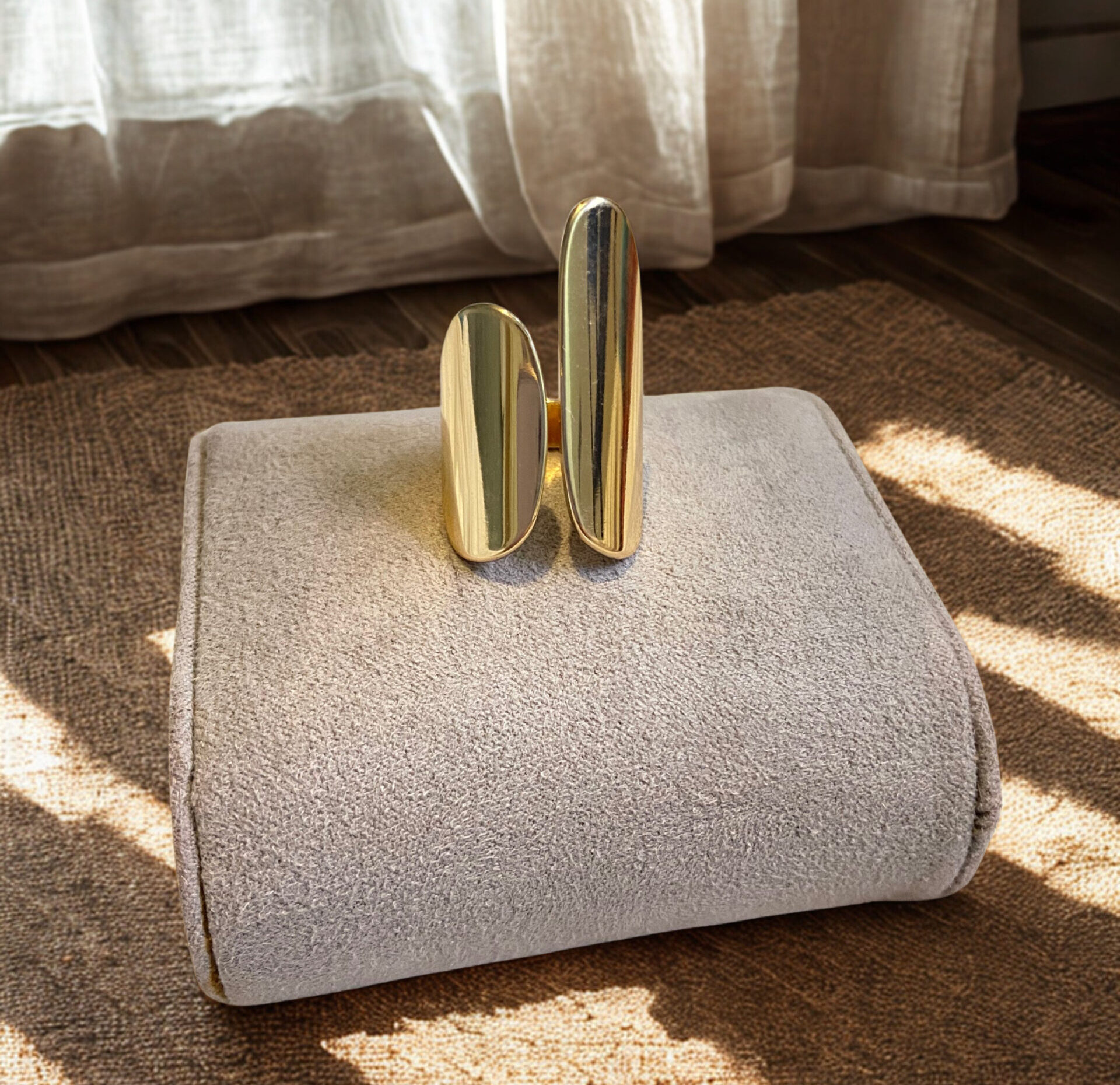 Bague composée de deux volumes lisses et verticaux aux reflets miroir.