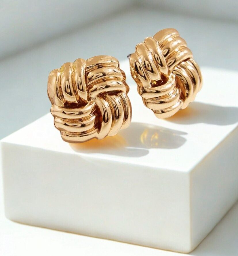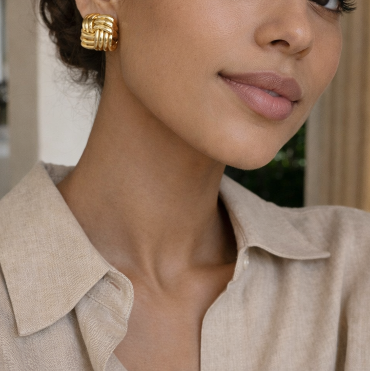 Boucles d’oreilles dorées au design torsadé et volumineux, une pièce audacieuse et lumineuse qui apporte caractère et élégance à chaque tenue.